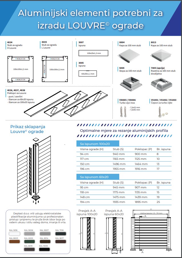 Početna ︱ Uputstvo za montažu ︱ Optimalne mjere za rezanje profila iz LOUVRE sistema