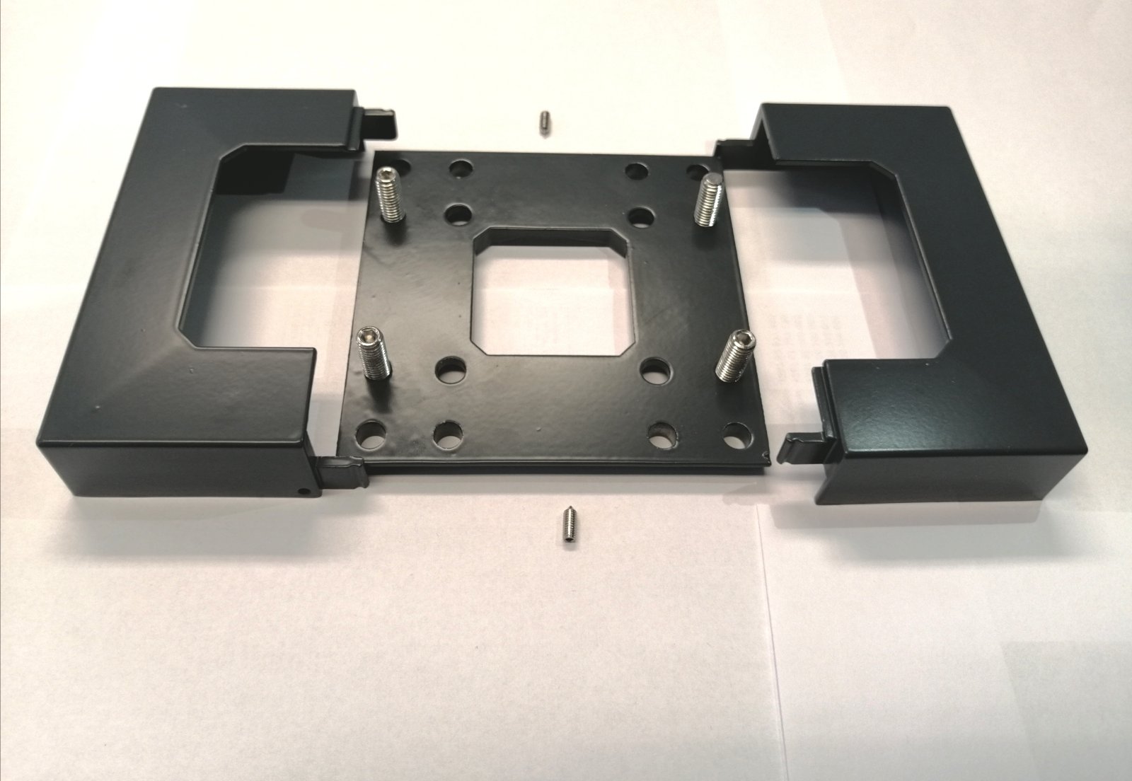 Set sadrži ploču za montažu, pokrivnu rozetnu, te inbus vijke pomoću kojih možete da nivelišete neravnine na kojima se montiraju stubovi.